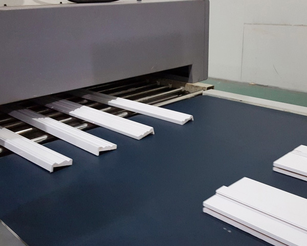 091300mm自動(dòng)噴漆線適用于門(mén)框線、畫(huà)框、舍槽企口板、門(mén)窗配件、家具配件踢腳線、地板、塑鋼型材和木塑線條等條型工件的三個(gè)表面,針對(duì)UV和水性油漆等各種油漆進(jìn)行連續(xù)自動(dòng)噴漆。
