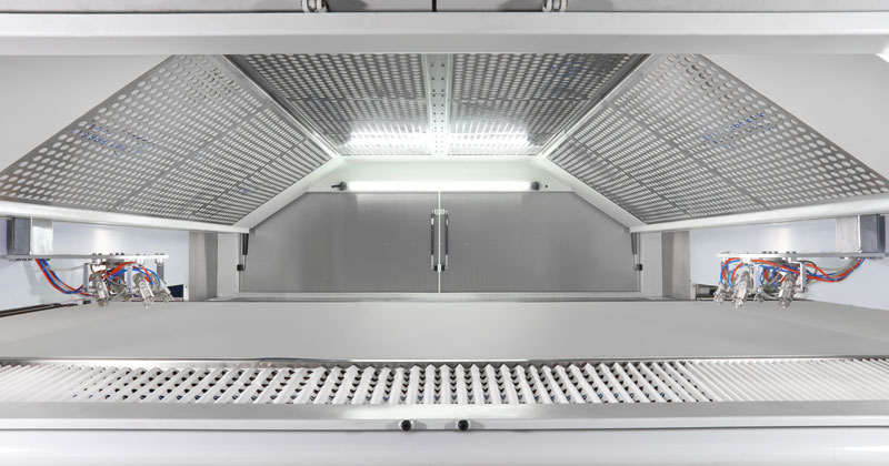 具有優(yōu)良的漆霧控制,自主研發(fā)的多層油漆回收系統(tǒng)讓油漆利用率達(dá)到95%以上,同等產(chǎn)量一年可節(jié)省30%以上的涂料成本,節(jié)省成本。