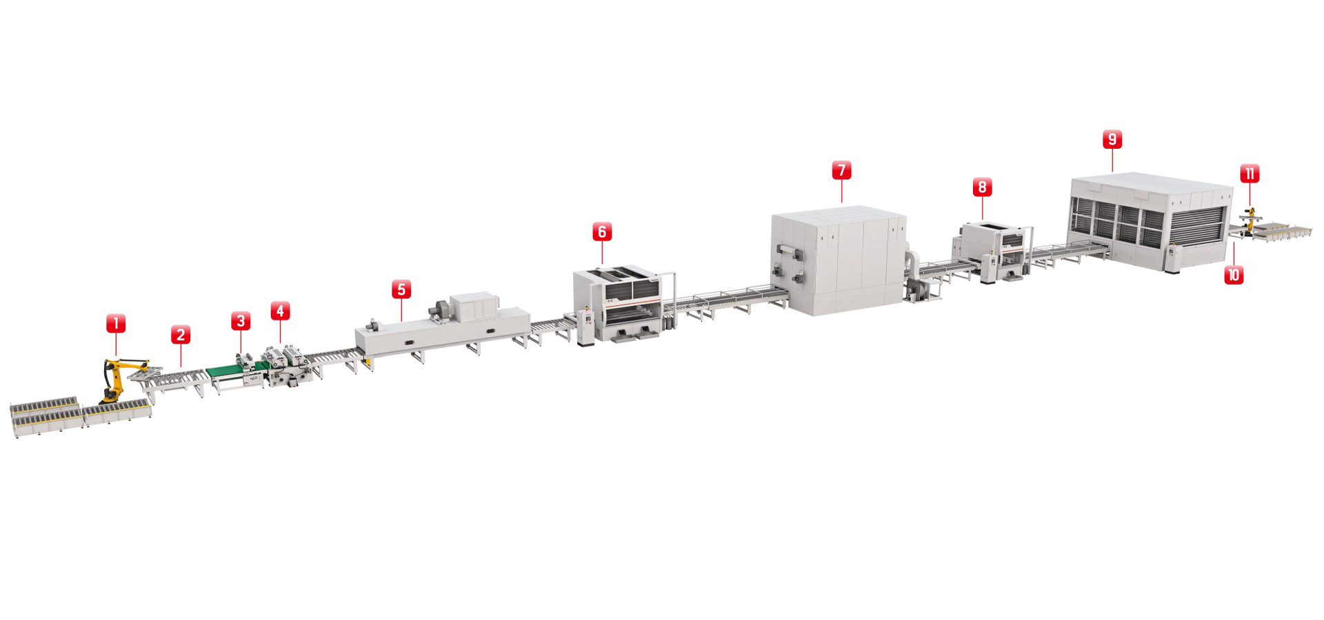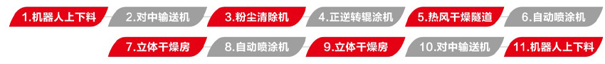 預輥實色水性乳膠漆,再噴第一次質(zhì)感涂料,待干后再噴第二次水包水涂料,形成自然立體的火燒石面效果,是外墻最受熱選的一種效果。后段配平鋪式立體干燥房,避免了厚噴漆膜流掛的現(xiàn)象,同時實現(xiàn)油漆快速干燥,將能耗降至最優(yōu)。