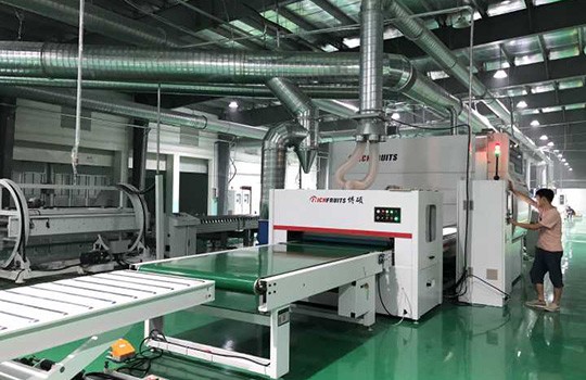 設(shè)備特色 自動(dòng)噴漆、砂光、噴色、修色和面漆,不下線連續(xù)生產(chǎn)。