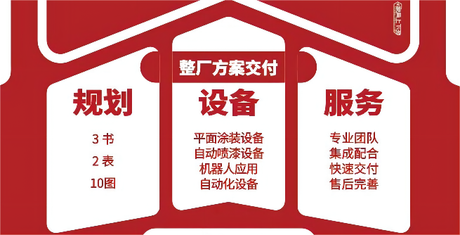 “服務”部分包括博碩團隊的前、中、后期服務,以及集成涂裝工廠必要的,諸如環(huán)保、吸塵、空氣壓縮等輔助設施及配套設備等。