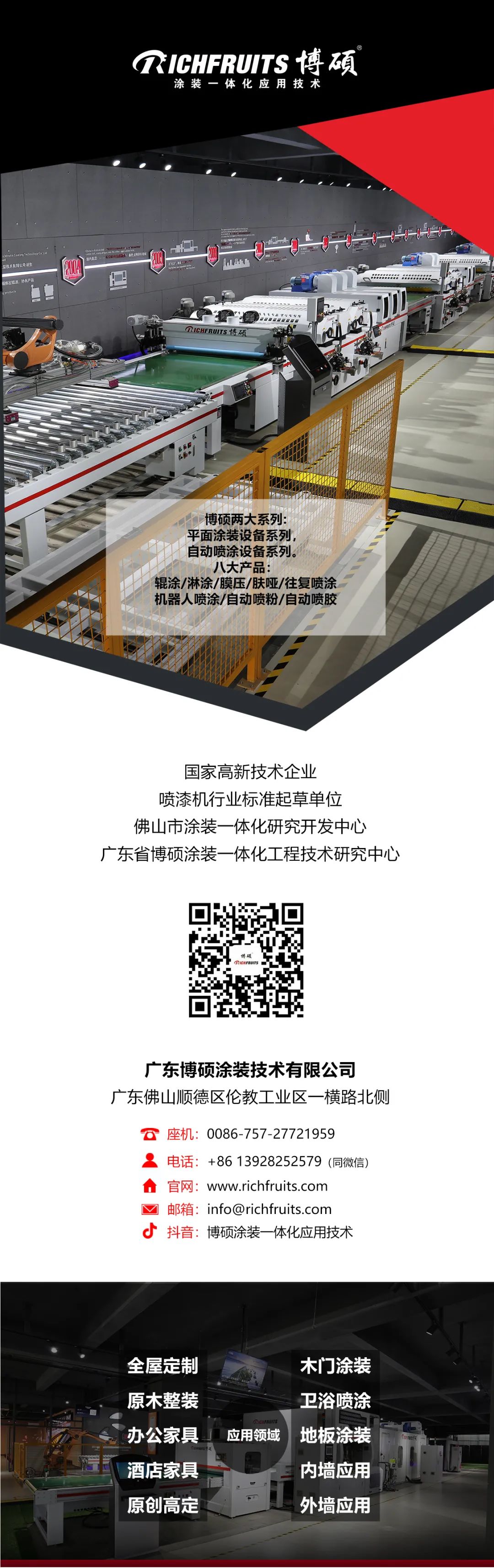 適用于板式家具、實木門、櫥柜門、大板臺、工藝品、木飾面板、裝飾板等板式工件的平面和四個側(cè)邊,進行高質(zhì)量效果、大批量連續(xù)自動噴漆。自動化涂裝設(shè)備可以提高產(chǎn)品質(zhì)量和生產(chǎn)效率,同時減少油漆的損耗,節(jié)省成本。