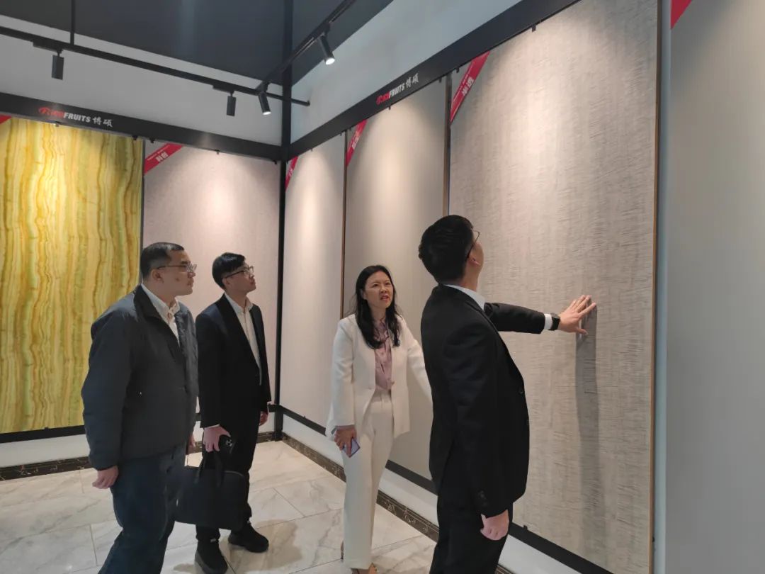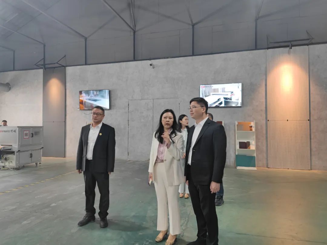 劉書記一行首先對博碩的廠房外墻、生產(chǎn)車間、涂裝一體化智能體驗(yàn)館進(jìn)行了視察。博碩廠房外墻是博碩自主研發(fā)的涂裝工藝及設(shè)備應(yīng)用在硅酸鈣板上,制作成的保溫裝飾一體板,不僅實(shí)現(xiàn)了仿各種花崗巖的圖案,還達(dá)到環(huán)保、節(jié)能的效果,推動(dòng)了“中國裝配式建筑”的發(fā)展,實(shí)現(xiàn)了住宅產(chǎn)業(yè)化,再進(jìn)入生產(chǎn)車間,更加深入了解博碩涂裝的整體體系以及戰(zhàn)略布局