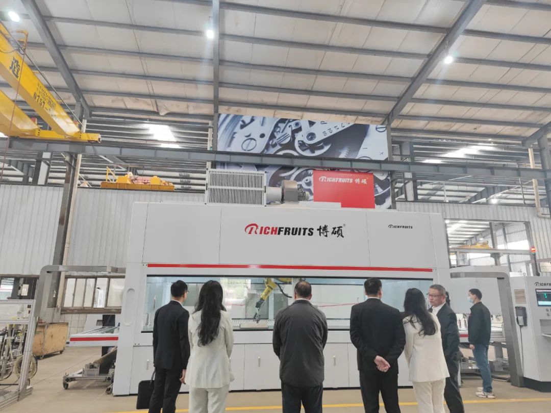 再一同體驗(yàn)了“涂裝智能生產(chǎn)線”準(zhǔn)分子膚感板的生產(chǎn)過程,從進(jìn)料到出成品,感受到準(zhǔn)分子膚感板如嬰兒般皮膚細(xì)膩的觸感。通過現(xiàn)場感受涂裝設(shè)備在效率、智能、環(huán)保、節(jié)能方面的先進(jìn)性,劉書記對博碩在技術(shù)研發(fā)的投入及設(shè)備的智能、環(huán)保、節(jié)能方面的顯著成效給予了充分的肯定和高度的贊揚(yáng),對博碩未來及長遠(yuǎn)發(fā)展非??春?,同時(shí)也做出了相關(guān)的工作指示。