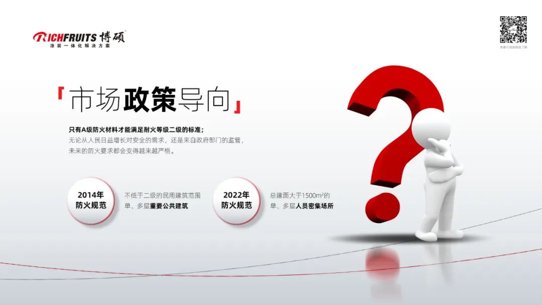 要分析這一個(gè)點(diǎn)要首先要考量的就是政策,我們仔細(xì)對(duì)比了上一版和今年6月剛開始執(zhí)行的最新版的國(guó)家對(duì)建筑耐火標(biāo)準(zhǔn)的規(guī)范要求,大家肯定都認(rèn)同:未來的防火要求,無論從人民日益增長(zhǎng)對(duì)安全的需求,還是來自政府部門的監(jiān)管力度,都會(huì)變得越來越嚴(yán)格。剛剛提到的,無機(jī)板不燃燒性的這種A級(jí)防火性能,就剛好能滿足政策對(duì)建筑物耐火等級(jí)的要求。這無疑為無機(jī)板打開了一片新的市場(chǎng)。