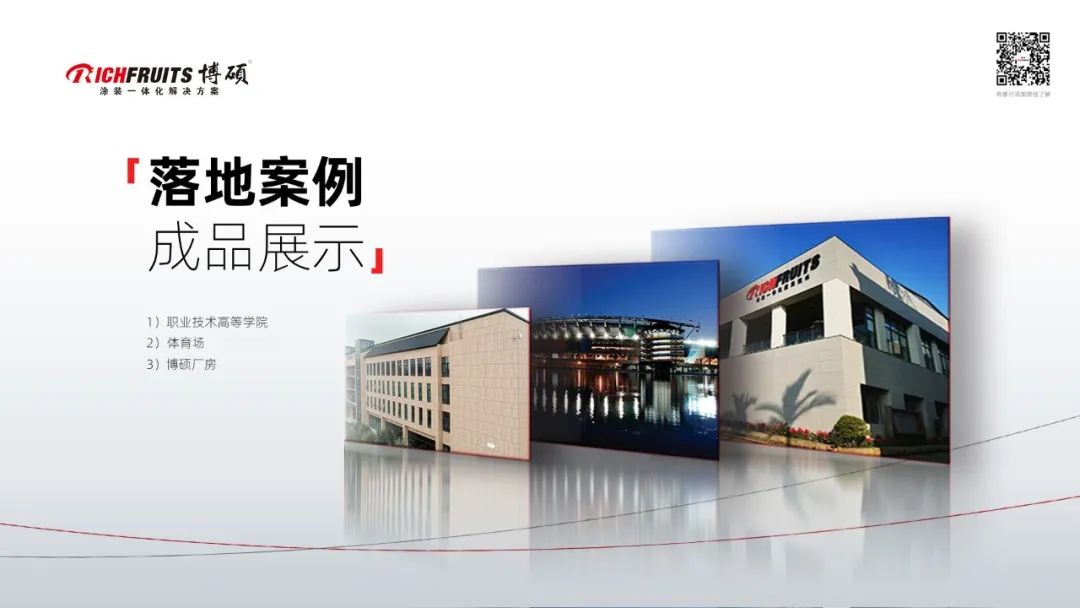 這個(gè)是亞士創(chuàng)能做的項(xiàng)目的實(shí)景圖片,他們的產(chǎn)品更多的是應(yīng)用在建筑外墻,參與了非常多的體育場(chǎng),醫(yī)院、學(xué)校這些大型建筑的外墻工程。比如說博碩的廠房外墻。