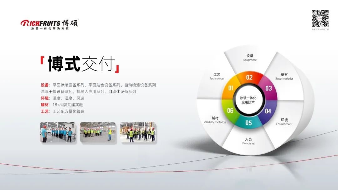 剛才談到三條生產(chǎn)線,實(shí)際上買生產(chǎn)線很容易,但要快速做出好產(chǎn)品還要遇到材料、工藝等一系列問題,所以博碩就提出涂裝一體化應(yīng)用技術(shù)六要素:工藝、設(shè)備、基材、環(huán)境、人員、輔材。今天主題整家化配套,痛點(diǎn)在快速交付,博碩過去20年的經(jīng)驗(yàn)積累了大量的工藝參數(shù),形成了工藝配方。量化管理快速出產(chǎn)品,這就是博式交付。
