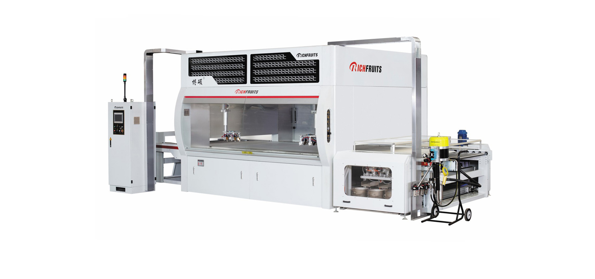 適用于實(shí)木家具、實(shí)木復(fù)合門、美式櫥柜、套房家具、衛(wèi)浴柜、展示柜、工藝品等板式工件的平面和四個(gè)側(cè)邊,針對(duì)UV、PU、AC、NC和水性漆等,進(jìn)行高質(zhì)量效果連續(xù)自動(dòng)噴漆,實(shí)現(xiàn)節(jié)能、環(huán)保和減少人工,提高產(chǎn)品質(zhì)量和生產(chǎn)效率。