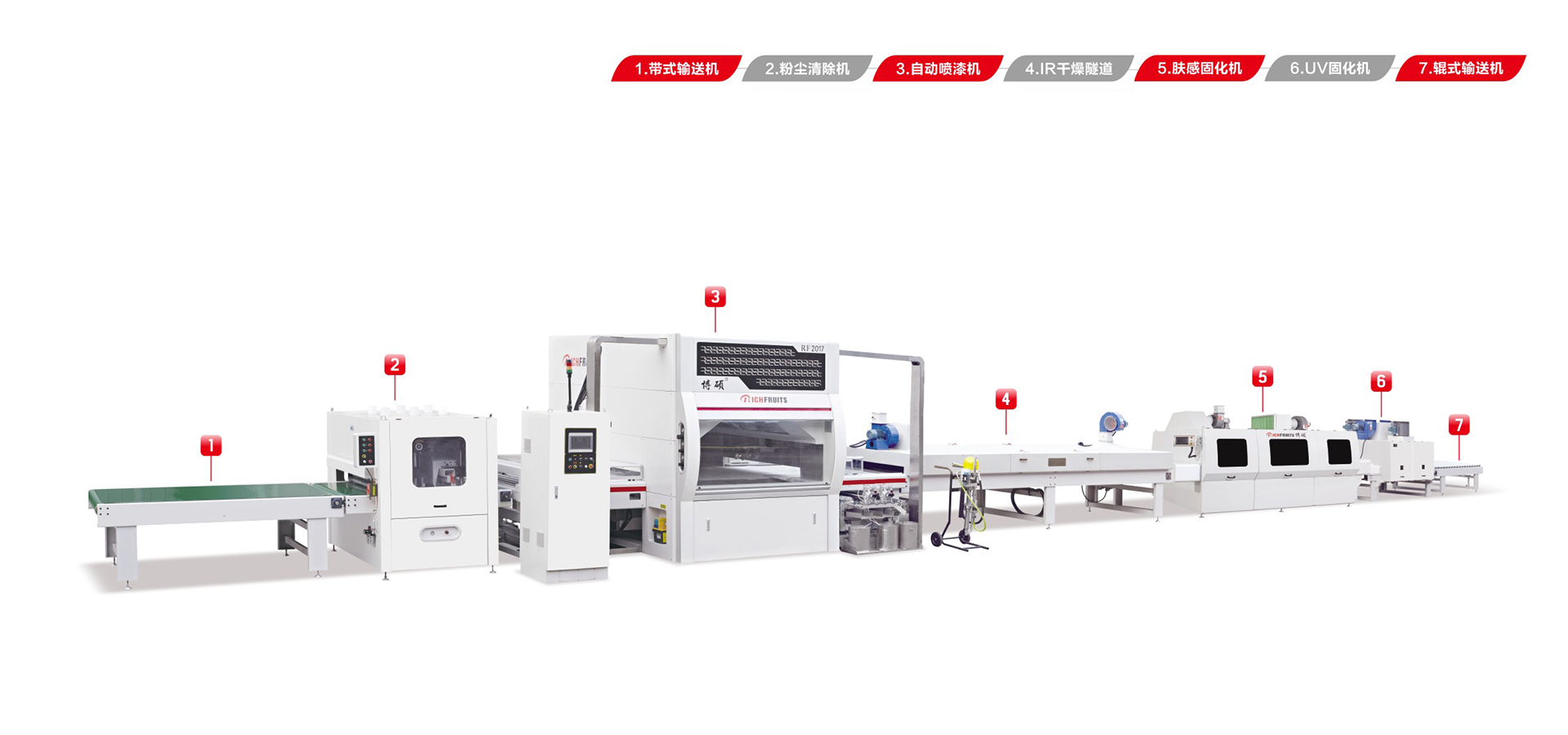 適用于板式家具、實木門、櫥柜門、工藝品、裝飾板、硅酸鈣板、玻鎂板、水泥纖維板的板式加工件的平面和四個側邊進行高質量、大批量連續(xù)噴漆。