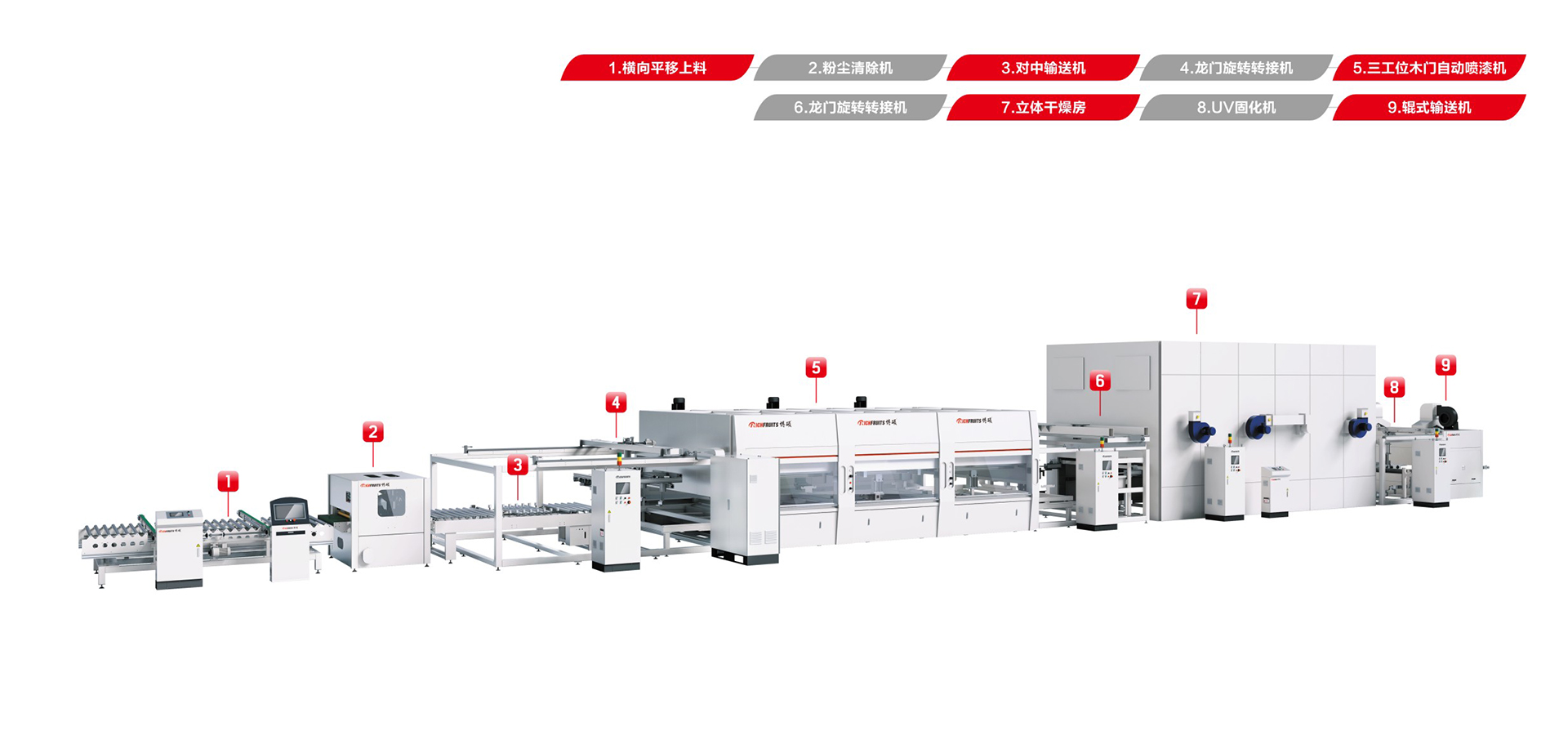適用于板式家具、實木門、櫥柜門、工藝品、裝飾板、硅酸鈣板、玻鎂板、水泥纖維板的板式加工件的平面和四個側(cè)邊進(jìn)行高質(zhì)量、大批量連續(xù)噴漆。