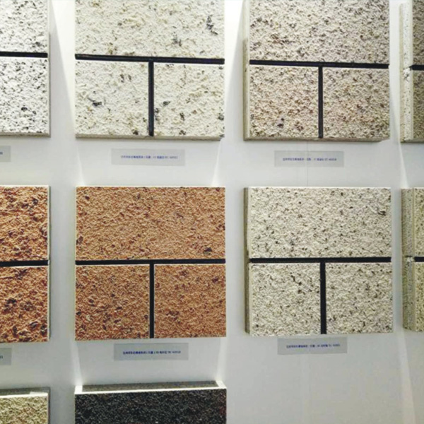 以中高密度纖維水性板/硅酸板為基材,透過砂光和多層水性漆輥涂,達到仿花崗巖的飾面效果,最后輥涂氟碳罩面,具有良好的自潔性能。水包水多彩漆可噴涂浮雕質(zhì)感的效果,自然清新,新鮮感持久不變,是一體板行業(yè)受歡迎的產(chǎn)品之一。