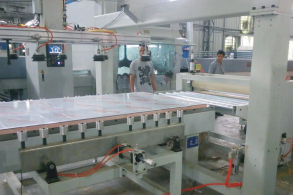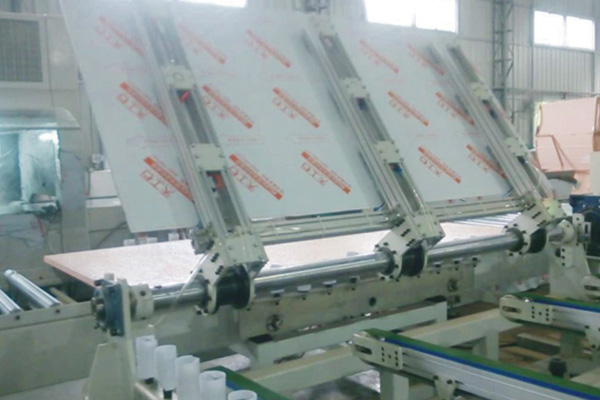 涂裝板和硬質(zhì)保溫板復(fù)合,早已實現(xiàn)了自動化連線。但是和軟質(zhì)巖棉板復(fù)合,很多工廠停留在人工操作階段。生產(chǎn)勞動強(qiáng)度大、生產(chǎn)環(huán)境污染嚴(yán)重、對人體傷害性大、生產(chǎn)效率低下、質(zhì)量控制不穩(wěn)定等因素,制約著一體板整體的生產(chǎn)效率。涂裝板和保溫板自動復(fù)合線,可以針對通用的保溫板進(jìn)行自動復(fù)合,是保溫板復(fù)合自動化連線生產(chǎn)有效的解決方案。