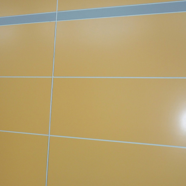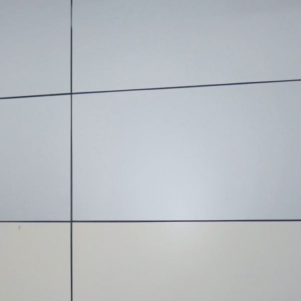 以中高密度纖維水性板/硅酸鈣板為基材,通過多層UV底漆輥涂和砂光,以及氟碳中涂和面漆輥涂,達到實色或銀粉氟碳漆的飾面效果,具有耐候性、耐熱性、耐低溫性、耐化學藥品性,并且具有良好的自潔性能。